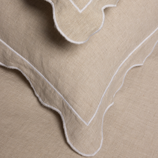 Scallop Pillowcases | Natural with white piping (set of 2)